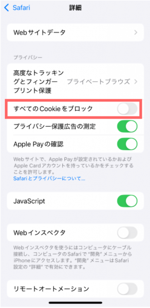 ※Safariの設定に関する詳細はこちら:[Apple公式]