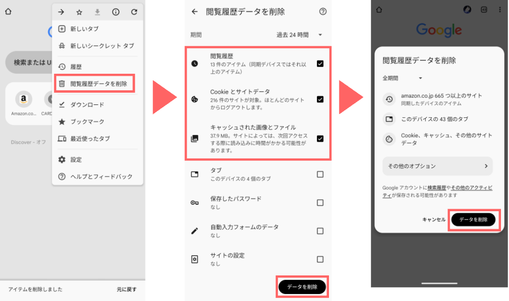 3) ブラウザの履歴やデータを削除する